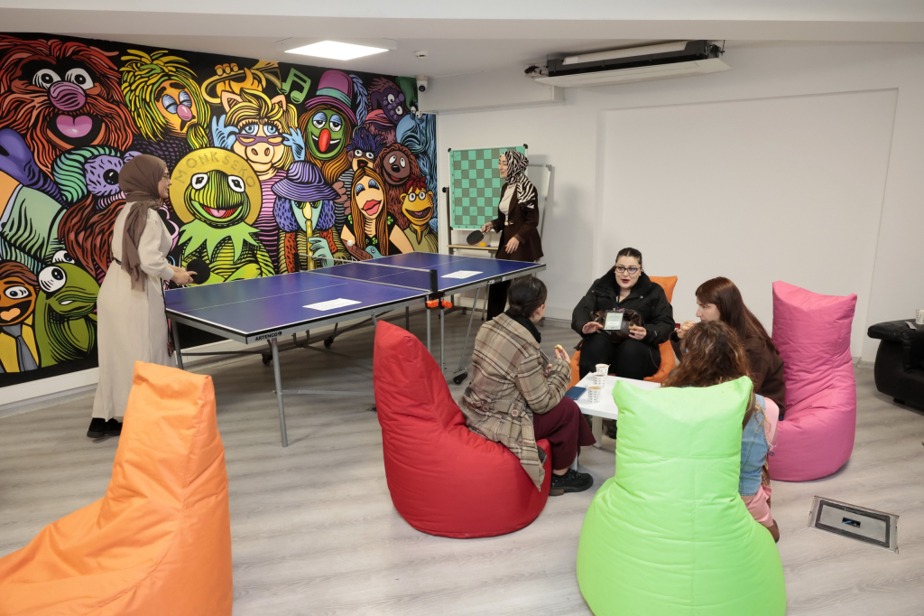 5. katta konumlanan bu özel mekan, içinde yer alan kütüphanesiyle gençlere sessiz bir ders çalışma ortamı sunuyor. Gençler bu alanda çeşitli atölye çalışmalarına katılarak kendilerini geliştirme fırsatı buluyor. Proje ve fikirlerini sadece kendileri ayrılmış bu alanda geliştiren gençlere çay ve kahve servisi de ücretsiz yapılıyor.