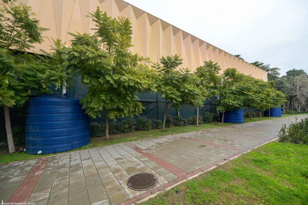 İzmir Büyükşehir Belediyesi, iklim değişikliği ve kuraklığın artırdığı su stresine karşı, belediyeye ait hizmet binalarında yağmur suyu hasadı uygulamalarını yaygınlaştırıyor.