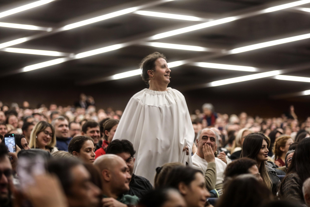 Oyun sonunda Çoruh ve Ayrık, “Sanata ve sanatçıya verdiği değerden dolayı kendisini ayakta alkışlamak istiyoruz” diyerek Fethi Yaşar’ı sahneye davet etti.
