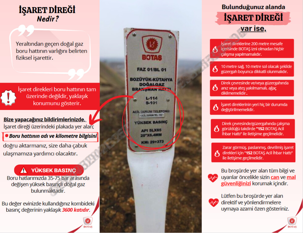 Açıklamada, boru hattı boyunca yer alan ve üzerinde hat bilgileri ile 152 acil durum numarası bulunan “Line Marker” işaret direklerine dikkat çekildi.