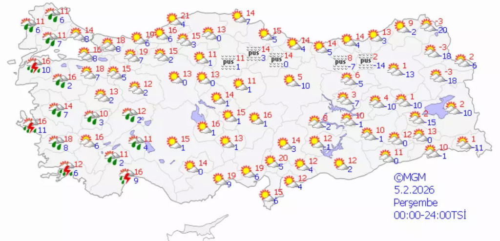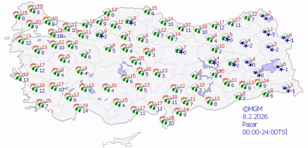 Meteoroloji Genel Müdürlüğü (MGM), güncel hava durumu tahmin raporunu yayımladı. Rapora göre Türkiye genelinde hava koşulları bölgeden bölgeye değişiklik gösterecek. Batı ve iç kesimlerde sıcaklıklar artışa geçerken, doğu bölgelerde yağış ve soğuk hava etkisini sürdürecek.
