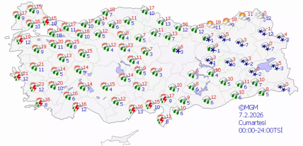 MGM değerlendirmelerine göre; Doğu Karadeniz kıyıları, Doğu Anadolu’nun doğusu, Ordu ve Artvin çevreleri gün boyunca yağış alacak. Gece saatlerinden itibaren ise Çanakkale çevreleri ile Balıkesir’in batı kesimlerinde yağmur ve sağanak bekleniyor.
